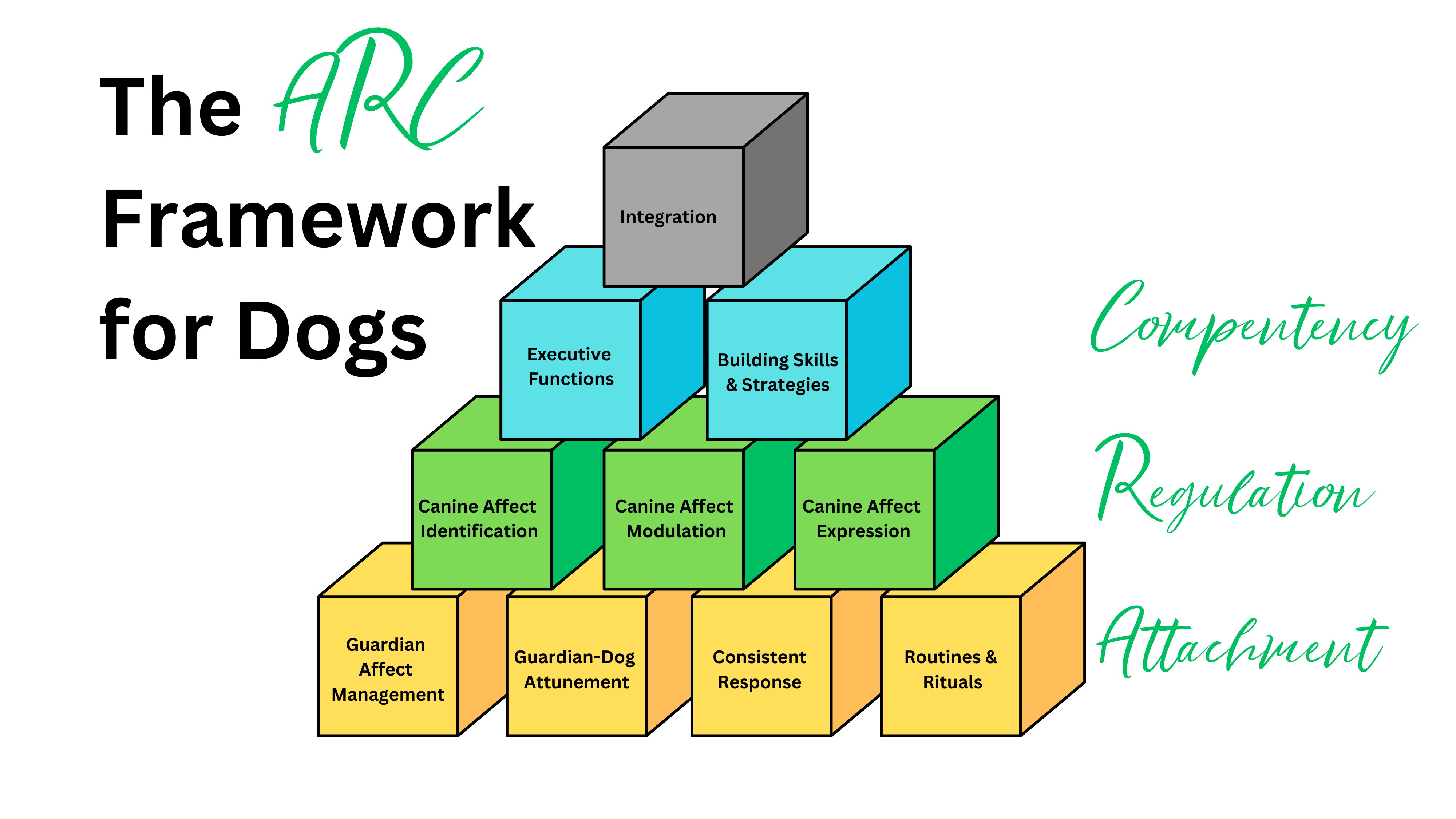 In the realm of animal behaviour, ARC for Dogs broadens the horizons of the ARC Framework, adapting its critical components for children and youth to address the unique needs of canines and their family systems. This specialized approach seeks to unravel the impact of early aversive or traumatic experiences and attachment disruptions on the development of resilience in dogs. By understanding these dynamics, ARC for Dogs aims to shed light on the root causes of chronic canine dysregulation and its associated symptoms.